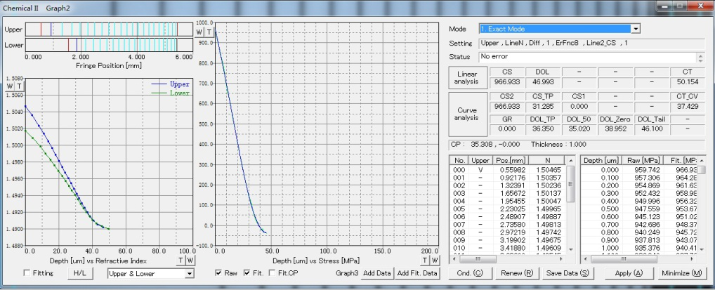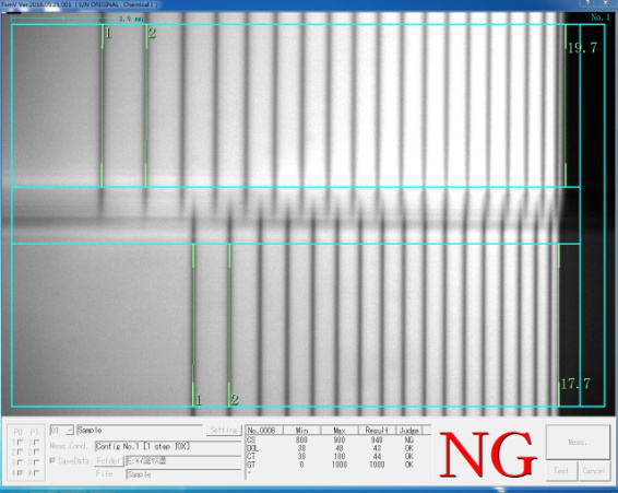 5.表面應(yīng)力(CS)值、應(yīng)力層深度(DOL)值、中心應(yīng)力(CT)值可以直接測量并顯示;