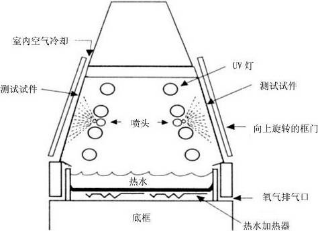 采用最佳模擬陽光中UV段光譜的熒光紫外燈,并結合控溫、供濕等裝置來模擬對材料造成變色、亮度、強度下降、開裂、剝落、粉化、氧化等損害的陽光(UV段)高溫、高濕、凝露、黑暗淋雨周期等因素